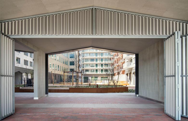 The open loggias are designed as flexible spaces, suitable for various uses, ready to be filled with activities initiated by the residents. A new type of informal ground floor is thus introduced into the city – a meeting place that is neither fully commercial nor entirely residential – democratic, inviting and varied in its programming.