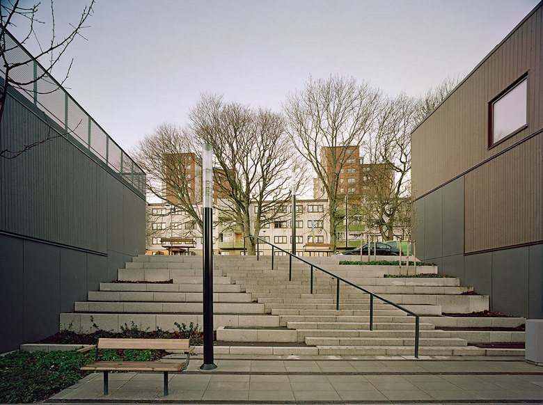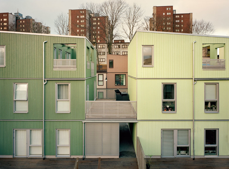 Fittja Terraces is an urban regeneration project, in the southern suburbs of Stockholm. Central Fittja was planned and built in the early 1970´s, and is a socially problematic area with a high degree of social housing. The client joined the municipality’s aim to vitalise and develop the area, with a deliberate focus on mixing different sizes of households, forms of tenure and complementing the area's homogeneous nature. The overall aim was to create opportunities for a housing career locally, in order to achieve long-term socio-economic possibilities and vibrant supportive public space. The project proved very popular: all units sold quickly and 80% of the buyers were local residents.