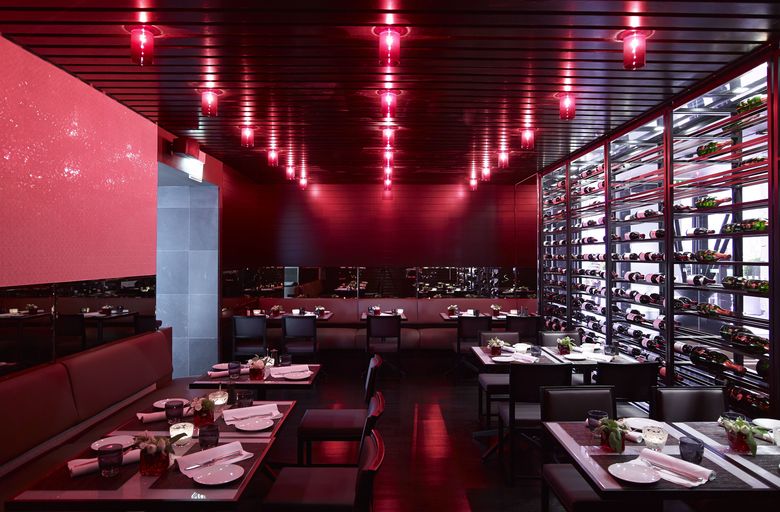 Spiegel an Wänden und Decke erweitern den Raum und lassen den Gast am gesamten Geschehen teilhaben.