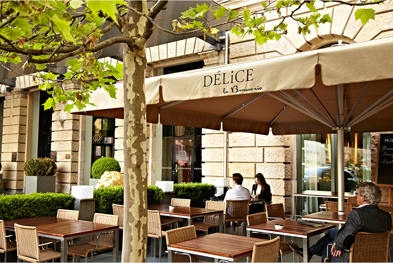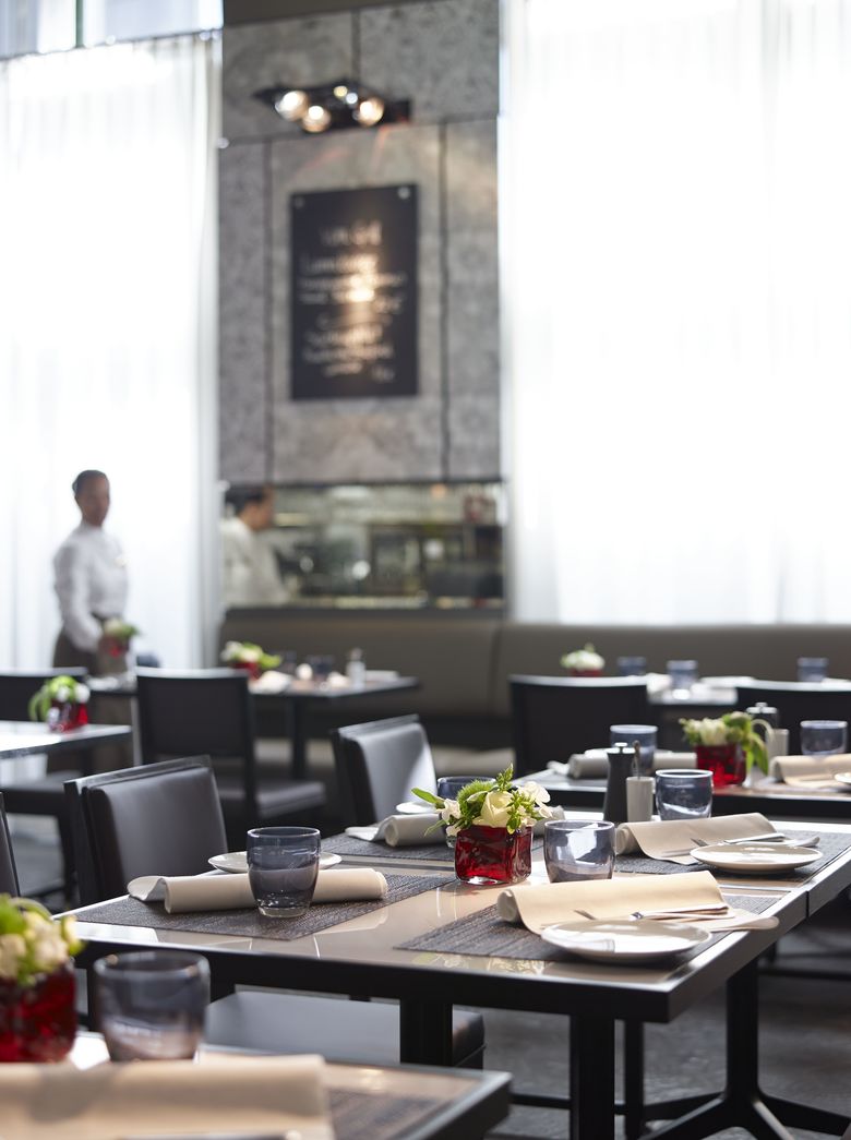 Lässige Eleganz und französische Leichtigkeit - in der neuen Brasserie sitzen die Gäste unter luftig hohen Decken um geben von mondänem, urbanem Design. Das angrenzende Weinlokal erhält durch reduzierte Lichteinsätze ein stimmungsvolles Ambiente.