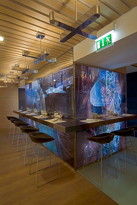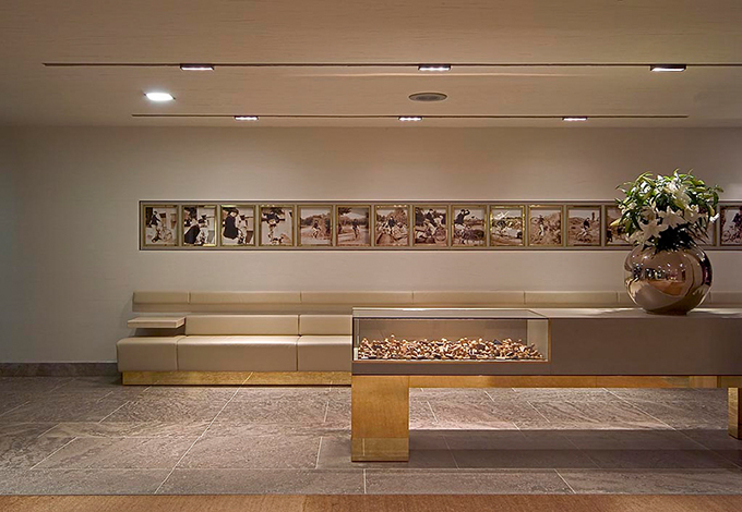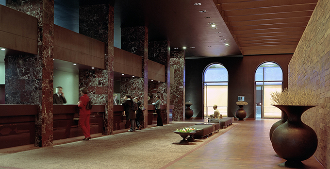 Die Anmutung des Gebäudes ist zum zentralen Thema unseres Designkonzeptes geworden. Mit umhüllenden Dunkelzonen, gezielten Farblichteinfällen, glänzendem Massivparkett, stoffbespannten Wänden und klassischen Raumproportionen schaffen wir eine Dramaturgie mit der Wertigkeit eines klassischen Grandhotel, allerdings streng abseits jeglicher Verwendung von historischen Polster- oder Schnörkelzitaten. Eine dennoch romantische Design-Kulturbühne inmitten der bayerischen Metropole.