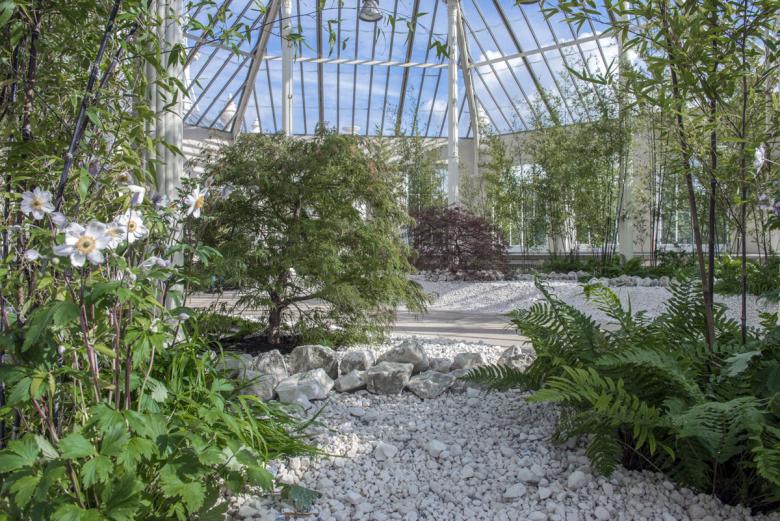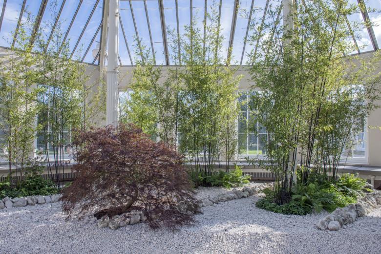 An English-Japanese garden, a tribute to the horticultural traditions of both our nations, is created by blending the essence of our cultures through the selection of plants and chalk stones. This fusion intertwines within the historic hexagonal structure of the Temperate House, which was built in1862 at the Royal Botanic Gardens, Kew.