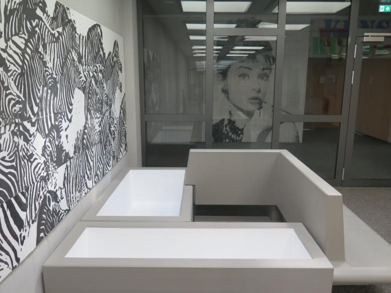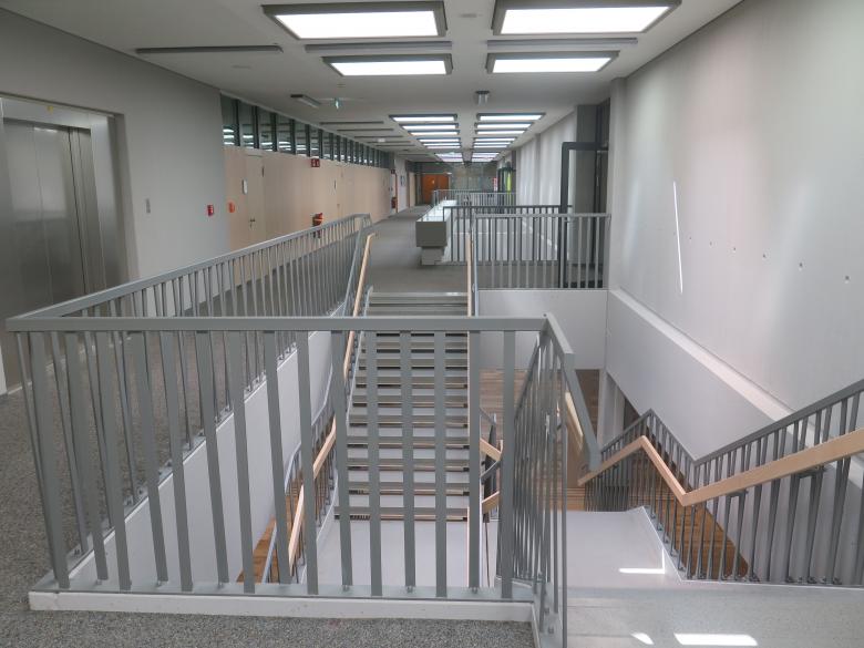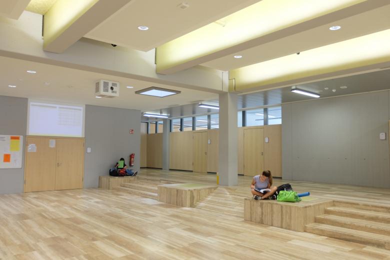 Erneuerung der abgehängten Decken als Metalldecke mit Heiz- Lüftungs- und Akustikfunktionen; Neugestaltung der Aula mit Mehrzweckraum und Pausenverkauf, baurechtl. Genehmigung als Versammlungsstätte für 1600 Personen; brandschutztechnische und energetische Sanierung mit Erneuerung der Fassade und der gesamten Haustechnik; Realisierung in 3 Bauabschnitten