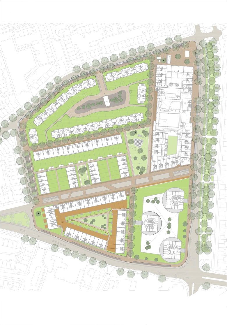 - Masterplan for 357 dwellings, 400 m2 small-scale businesses, and 4,000 m2 sports facilities, a total of 74,000 m2.