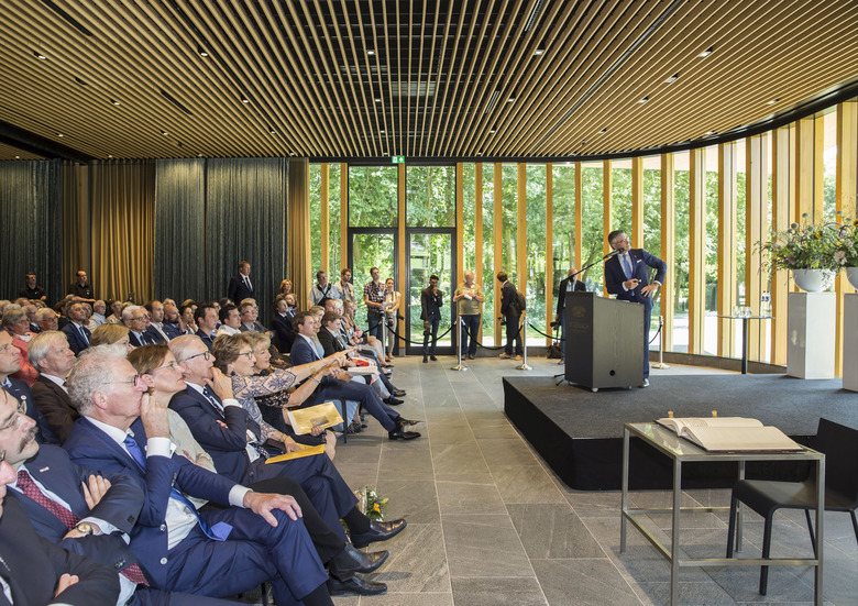 The manor farm, a national monument from 1668, has been renovated to house small meeting rooms as well as a restaurant to have lunch or coffee. This new public function serves the local community. An intimate 'village square' between the pavilion and the manor farm can be used as an outdoor extension of the foyer.