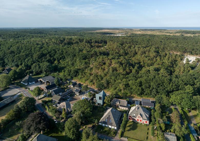The naturally sloping landscape embraces Villa BW, with a building volume characterised by a double-curved roof coupled with an unmistakable expression of the facade. The twisting roof is created as a result of two overlapping shapes. A gable roof is designed on the dune-side, also characteristic of the street scene on the Oorsprongweg. In contrast, a horizontal roofline is designed for the polder-side.