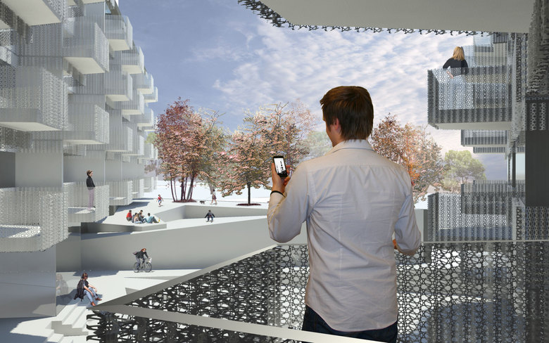 Auf den privaten Dachterrassen gibt es die Möglichkeit, seine eigenen Lebensmittel anzubauen. Obst, Gemüse und Kräuter, welche sich hier aus den unterschiedlichsten Kulturkreisen vereinen, schaffen eine zusammengehörende Karte, die über das eigene Pflanzbeet hinausragt und auf engstem Raum die globalisierte und doch diversifizierte Gesellschaft widerspiegelt. Die Beete werden in Kleingruppen zusammengefasst, so dass sich innerhalb der Wohngemeinschaft kleine soziologische Einheiten bilden können. Beim Austausch über den richtigen Zeitpunkt des Säens und der entsprechenden Pflege wird Gemeinschaft gelebt. Auf der kollektiv nutzbaren Sonnenterrasse können dann die Früchte der Arbeit gemeinsam begutachtet und verkostet werden.