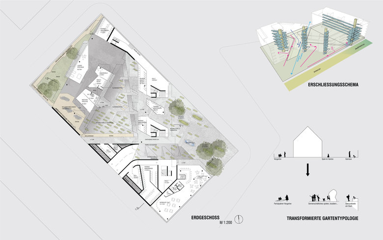 Alle Funktionen der Erdgeschoßzone dienen der sozialen Interaktion und Nachhaltigkeit.