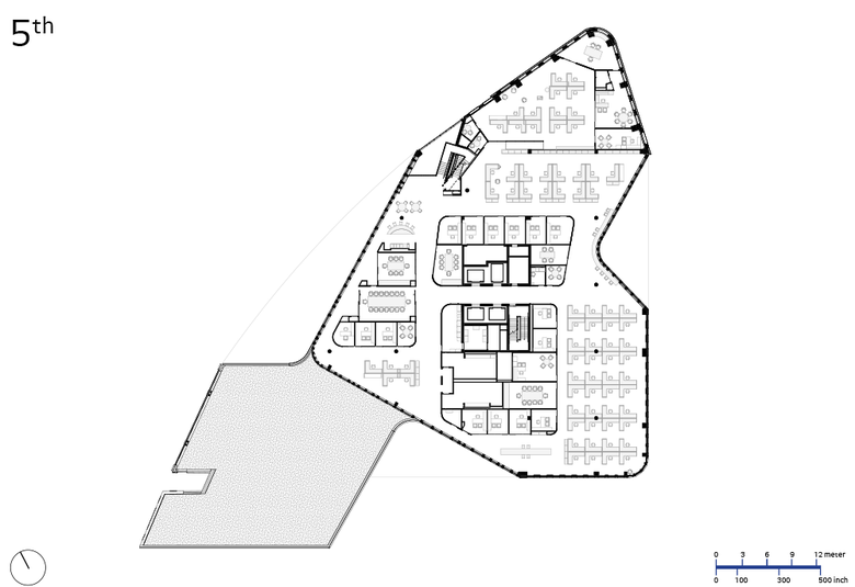 The building’s second floor is home to the Roxbury Innovation Center, initiated by Mayor Walsh. Mecanoo and Sasaki’s design embodies the City’s vision of a symbol of change that is freely accessible to all, celebrating the history of Roxbury and inaugurating a new era for the neighbourhood. Since every student and parent in the state will visit the BPS at least once, the building is designed to be friendly, healthy and inspirational to people of all ages.
