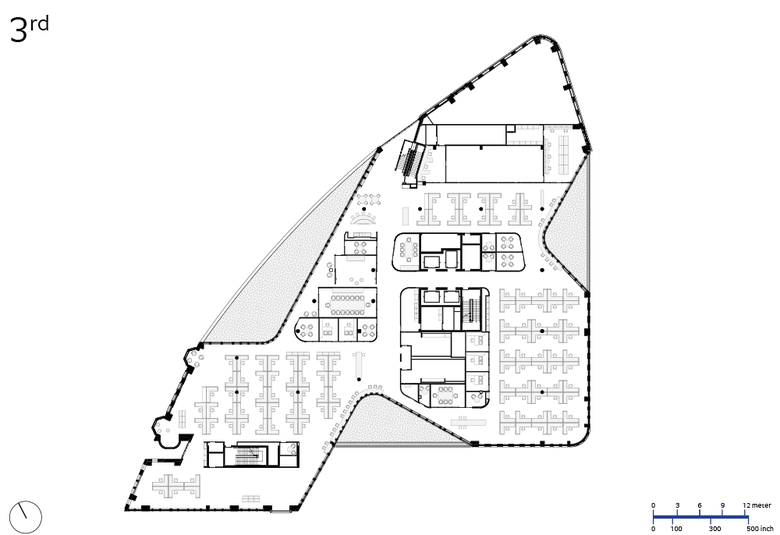 It challenges what an office building is, proposing new ways of working and promoting collaboration and transparency through an open layout. The existing historical facades of the Ferdinand, Curtis and Waterman buildings have been comprehensively restored and stitched together into a bright new building.Referencing these original buildings, the central volume to new municipal centre also embodies a time-honoured approach to craft in construction. As a Bostonian building with a Dutch touch, a contemporary interpretation of classical layering manifests itself in the brickwork encompassing a number of different masonry techniques from running bond, to stack bond, to soldier bond.