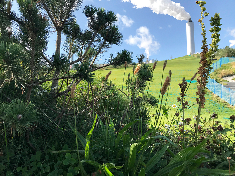 Recreation buffs and visitors reaching the summit of CopenHill will feel the novelty of a mountain in an otherwise-flat country. Non-skiers can enjoy the rooftop bar, cross-fit area, climbing wall or highest viewing plateau in the city before descending the 490m tree-lined hiking and running trail within a lush, mountainous terrain designed by Danish Landscape Architects SLA. Meanwhile, the 10,000m2 green roof addresses the challenging micro-climate of an 85m high park, rewilding a biodiverse landscape while absorbing heat, removing air particulates and minimizing stormwater runoff.