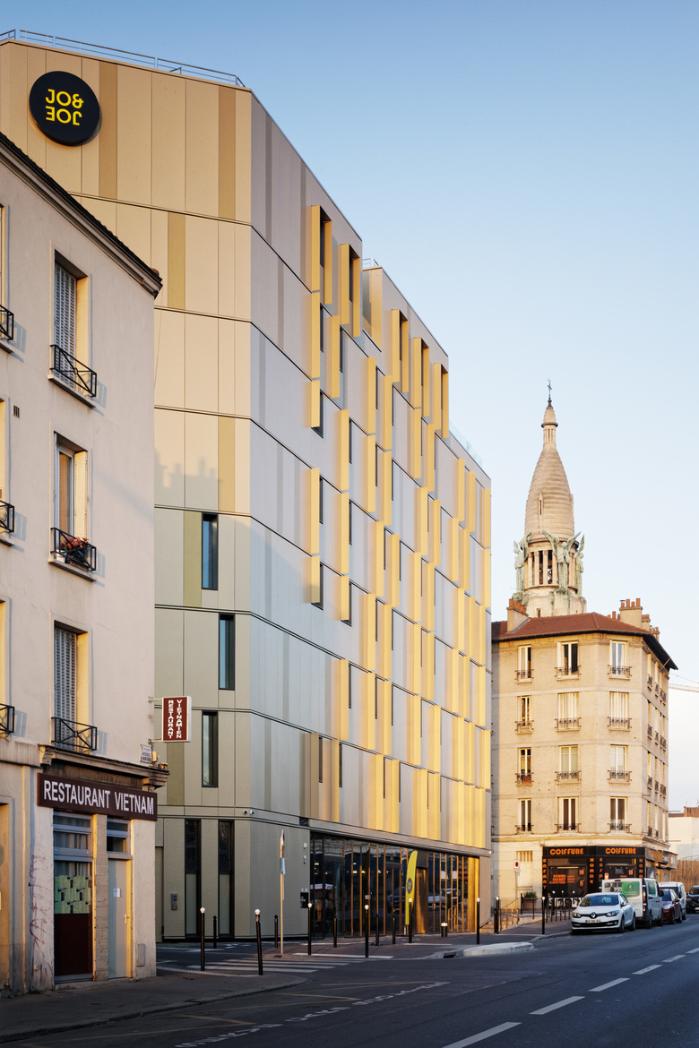 Bording the “boulevard périphérique”, the Paris ring road, Jo&Joe is a total of 6.000 m² distributed over 9 floors, including an underground level partially dedicated to parking. The hotel is composed of 85 rooms, private or shared, with a total of 612 beds. A restaurant, a bar and an indoor garden will be accessible to guests and visitors. Many planted terraces will also contribute to bringing a natural and peaceful atmosphere to the complex.