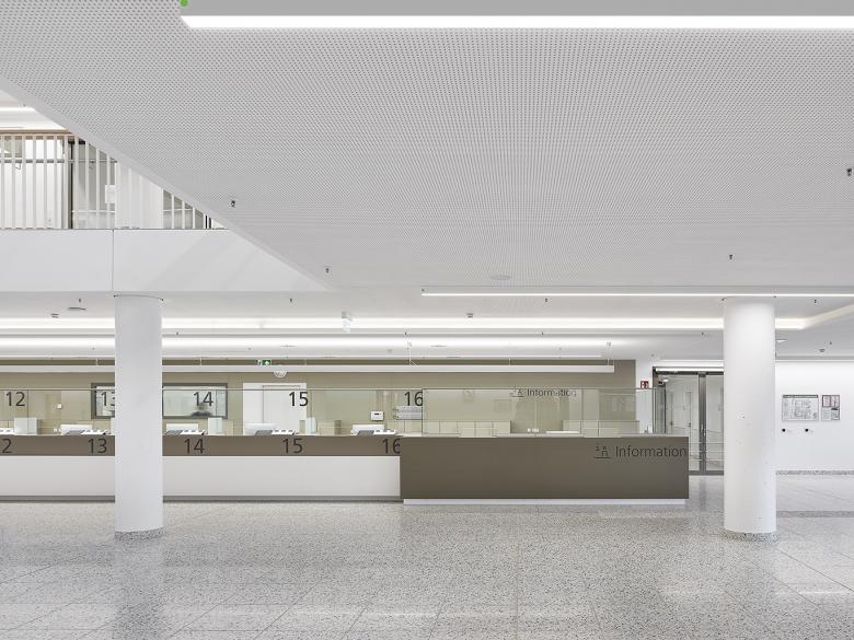 Das als Haus F bezeichnete Gebäude im Zentrum der Landeshauptstadt Stuttgart wird zukünftig die erste Anlaufstelle für alle Patienten des Katharinenhospitals im Klinikum Stuttgart sein. In den Neubau ziehen die radiologischen Kliniken, Teile der Inneren Medizin und Bettenstationen mit etwa 250 Betten ein, Herzstück ist die große interdisziplinäre Intensivstation mit über 60 Betten. Städtebaulich setzt der Neubau architektonisch Akzente in zentraler Lage zwischen Stadtgarten, Universität und Lindenmuseum.