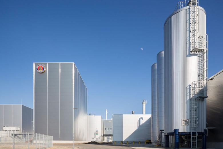Die Gebäude der neuen Paulaner Brauerei nordwestlich von München sind bis zu 28 Metern hoch und werden in der Produktion über eine begehbare Rohrtrasse verbunden, die teilweise überdacht und seitlich einfachverglast ist. Das Ensemble der Gebäude trägt eine gemeinsame architektonische Sprache mit einheitlichen Leitdetails, wie der Gestaltung der Fenster, Türen, Tür-Tor-Kombinationen, Fassadenpaneelen etc. Um den bayerischen Himmel in der Fassade zu spiegeln, wurde ein spezielles Konzept entwickelt, mit Edelstahl als Oberfläche.