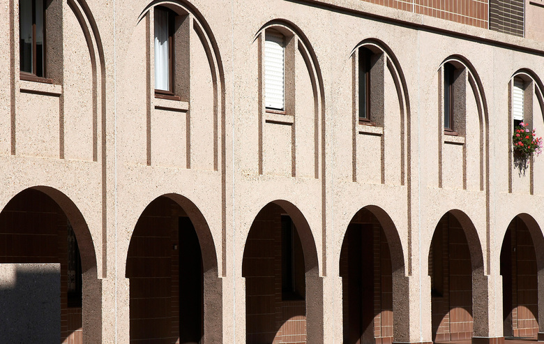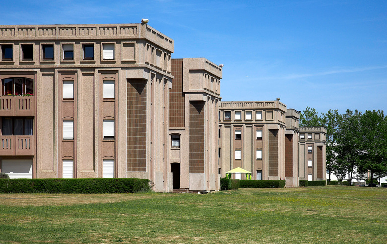 389 viviendas sociales agrupadas en cuatro manzanas cuadradas con un amplio patio interior accesible desde la calle. Los edificios disponen de planta baja y tres pisos. La decisión de dar solamente un espesor de 8-10 metros a los bloques de viviendas permite que todos los apartamentos puedan tener doble orientación. Las escaleras están situadas en unos pabellones que sobresalen de las fachadas, sirviendo a dos puertas por rellano y permitiendo el acceso directo al aparcamiento.