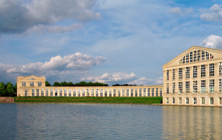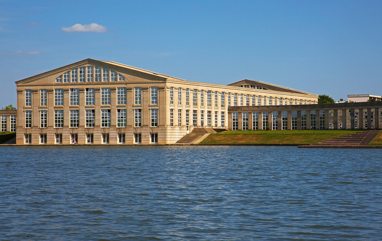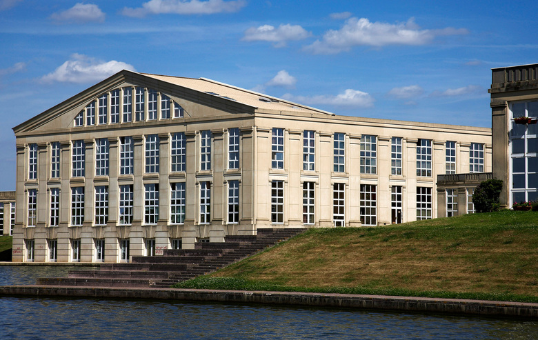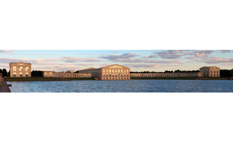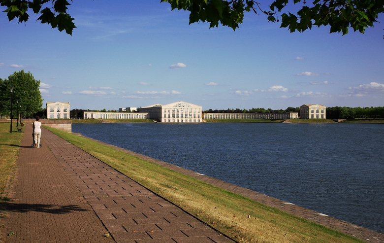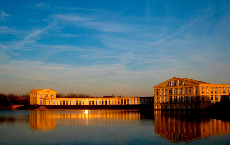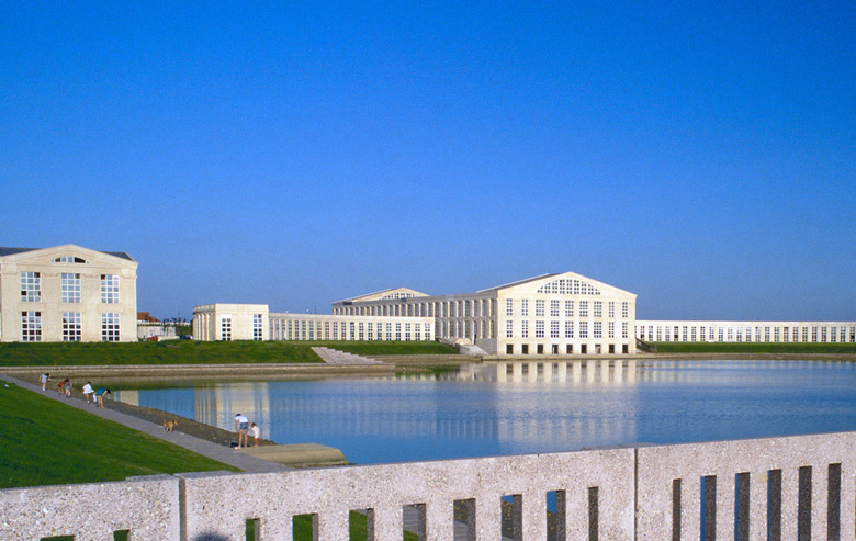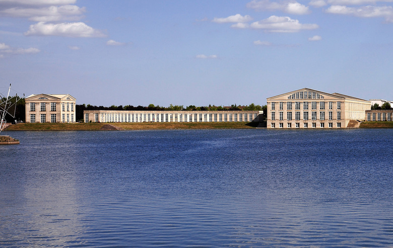 Conjunto de 200 viviendas que completa la urbanización de la ville nouvelle de Saint-Quentin, al otro extremo del lago artificial donde el Taller construyó sus primeras viviendas en Francia. Los edificios se ordenan junto al lago recordando la distribución de una villa palladiana con un templo central de cuatro pisos, dos templetes de un cuarto de círculo y dos pabellones cuadrados en los extremos. El templo es rectangular, con un gran patio interior al que dan todos los apartamentos. La doble orientación es claramente perceptible, ya que todas las aberturas están centradas en los ejes de transparencia. Los templetes son una sucesión de casas individuales de dos plantas. La entrada, el vestíbulo y la cocina están en la parte convexa, mientras una gran sala de estar ofrece vistas al lago. La farsa perspectiva de la escalera permite absorber la deformación provocada por la estructura radial y conduce a las habitaciones superiores. Los pabellones son de cuatro plantas, con cuatro viviendas por planta de doble orientación en la esquina. El centro está ocupado por la circulación vertical. Los frontones de los pabellones y del templo central contienen apartamentos singulares en dúplex.