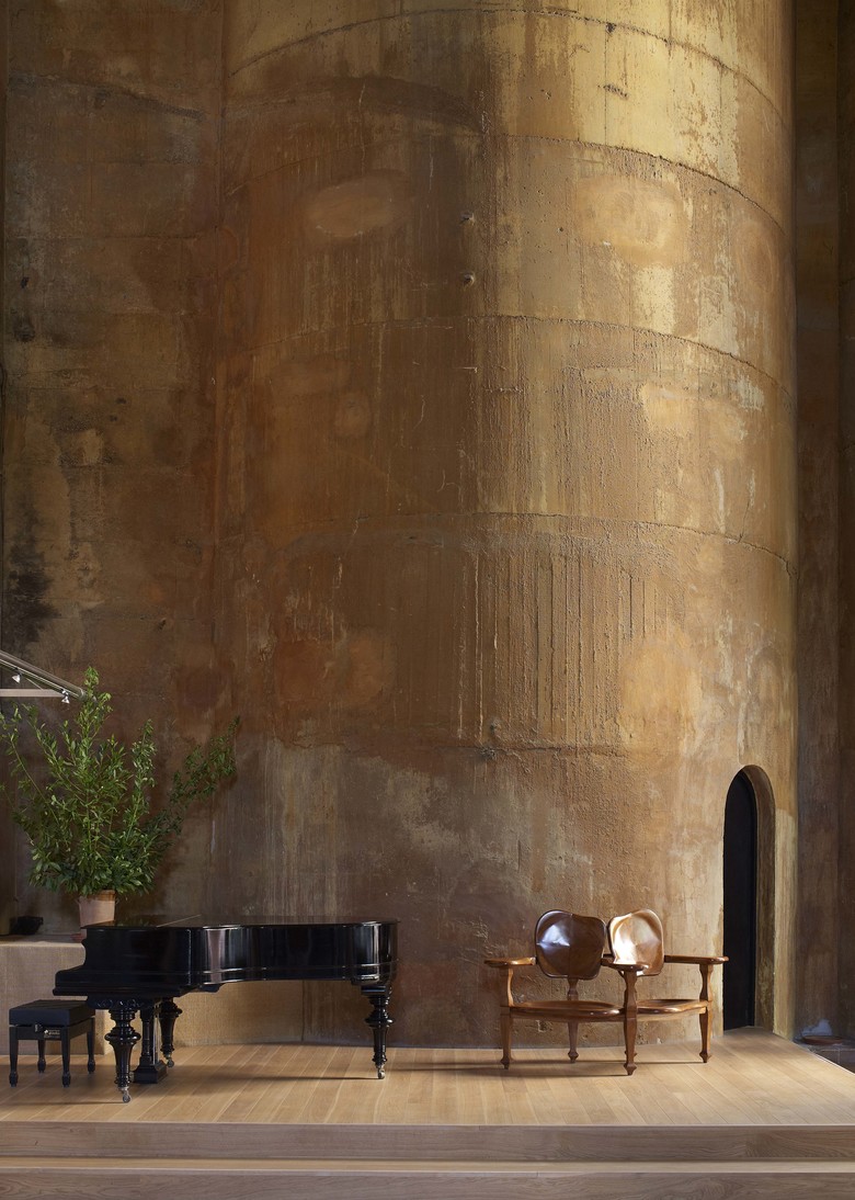 La transformación comenzó con una demolición selectiva de la antigua estructura hasta dejar visibles sus formas ocultas. Una vez definidos los espacios, se inició el proceso de adaptación de éstos al nuevo programa. Quedaron ocho silos adhibidos a oficinas, salas de reuniones, locales técnicos, laboratorio de maquetas, archivos, y un espacio llamado "La Catedral" por su monumentalidad, que aloja exposiciones, conciertos, proyecciones y toda clase de actos culturales ligados a la actividad profesional del arquitecto. La difícil tarea de crear un entorno vegetal donde antes había sólo cemento era parte integrante del proyecto. Gracias a las plantaciones, la nueva fábrica, rodeada de eucaliptos, palmeras, olivos y cipreses se ha convertido, a lo largo de los años, en un verdadero oasis.