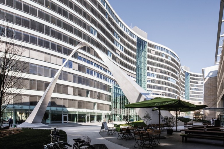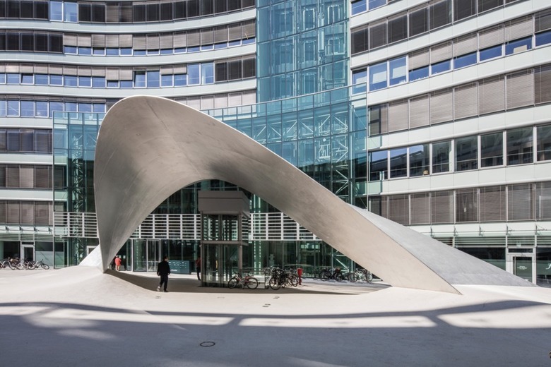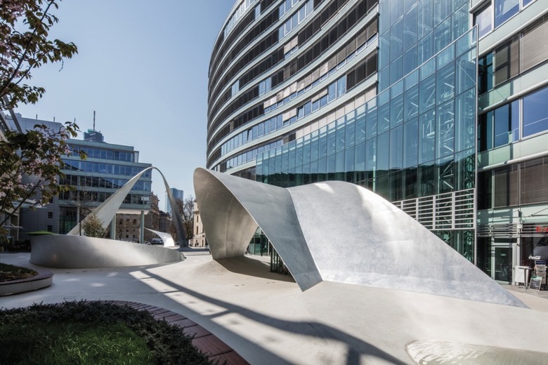 Die Neugestaltung der Außenanlage des Bürokomplexes „die welle“ ist eine städtebauliche Maßnahme mit architektonischem Rahmen und künstlerischem Objekt.