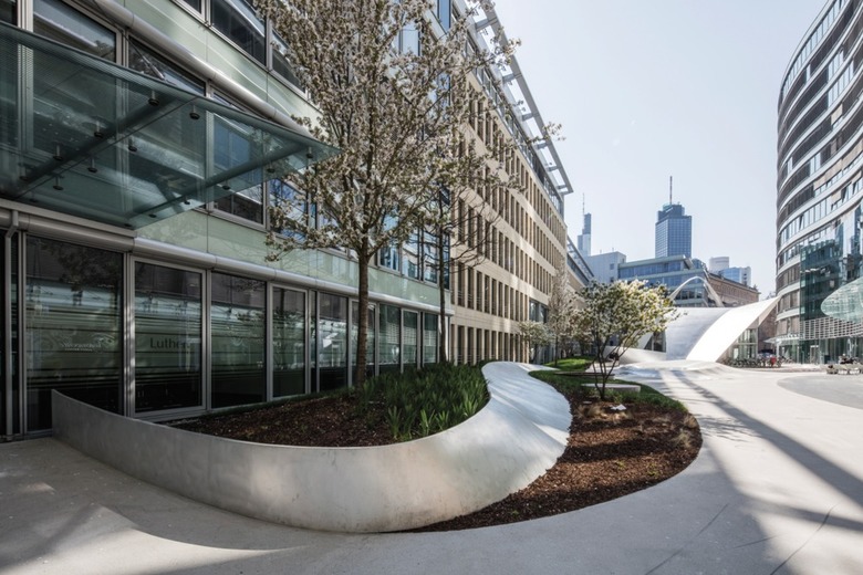 Gefragt war eine Neugestaltung der Außenanlage zur Aufwertung des Bürokomplexes „die welle“, nahe der Alten Oper in Frankfurt am Main. Der Name des Gebäudes gab den entscheidenden Impuls für die gestalterische Grundidee von schneider+schumacher.
