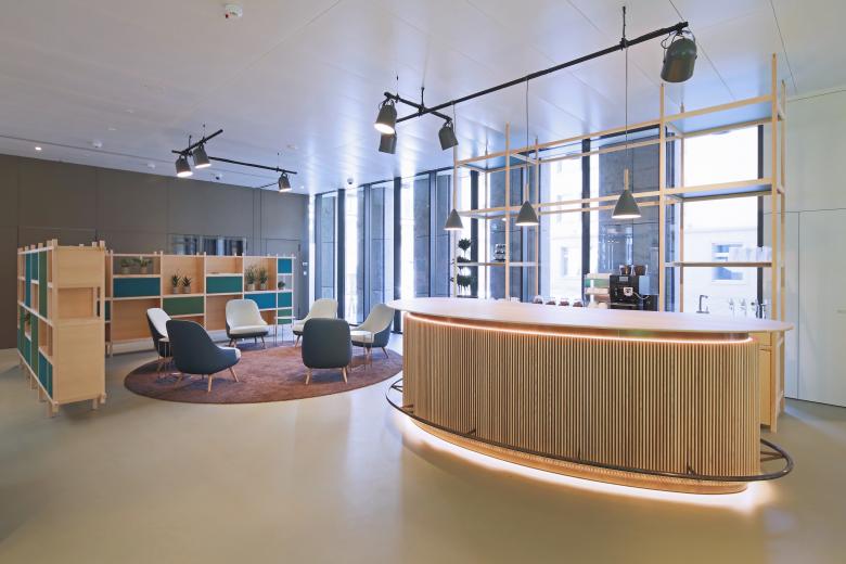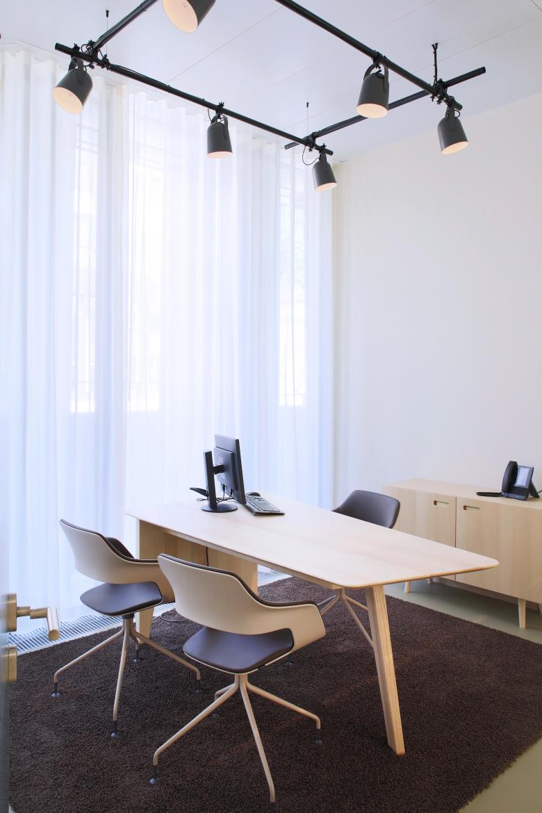 Die einladende Atmosphäre in den öffentlichen Bereichen sowie die funktional-dekorative Beleuchtung der Büros und Besprechungszimmer verleihen dem Gebäude einen speziellen Bürocharakter.