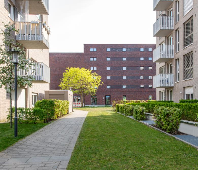 Seit Anfang der 2000er-Jahre befindet sich im Westen der Hansestadt Bremen eines der größten Stadtentwicklungsgebiete Europas: Die Überseestadt. Auf einer Fläche von 300 Hektar wird das ehemalige Industriehafenareal sukzessive in einen gemischt genutzten Stadtteil mit Gewerbe und Dienstleistungen, Freizeit, Kultur und Wohnen umgewandelt. Die beiden Neubauten mit insgesamt 150 Wohnungen befinden sich auf einem schmalen Grundstück im östlichen Teil des Areals. Sie verfügen jeweils über einen Sockel, der Gewerbeflächen, Läden, Cafés und Wohnungen aufnimmt und dem Programm des multifunktionalen Stadtteils mit belebten Erdgeschosszonen folgt.