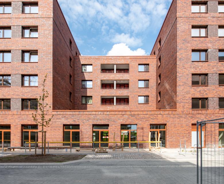 Zu den grundlegenden Herausforderungen gehörten die laute Straßenseite (die Lärmemissionen erlaubten keine Aufenthaltsräume zur Straße hin) und der breite Wohnungsmix mit flexiblen Größen zwischen einem und fünf Zimmern. Der Entwurf löst diese Probleme durch die Gliederung der Baukörper in jeweils zwei Häuser, deren Giebelseiten die zusätzliche Belichtung der größeren Wohnungen ermöglicht und in den Zwischenbereichen Höfe entstehen lässt. Ein weiterer Effekt dieser Figur ist die plastische Gliederung des Volumens nach außen, die der Straße einen angenehmen Rhythmus verleiht. Der hohe Detaillierungsgrad der reliefartigen Fassade mit ihrem warmen Klinkerton verweist auf die Tradition Bremens als Stadt der Klinkerornamentik.