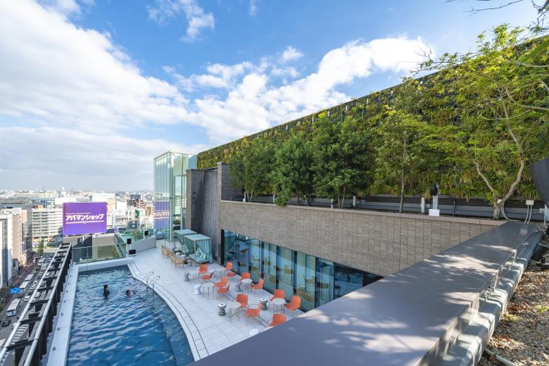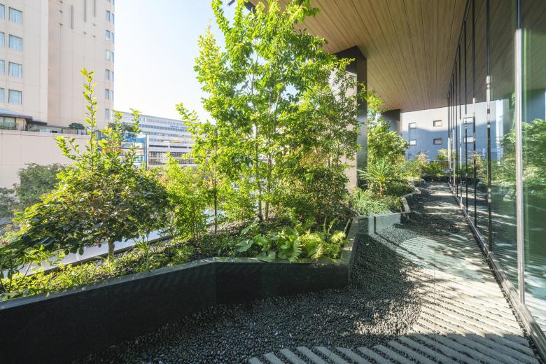 The external terrace features greenery and a waterfall which almost looks as if it has eroded away a part of the building, is visible from the station and is now a new landmark. The ground floor which connects to the city features the “city lounge” within the piloti space. Each bench and planter here are made from a single piece of aluminum bent into shape of an original design. The outdoor spa on the rooftop is open to the wide sky of Hakata and lets people enjoy the view of Hakata city. The plants used are selected through study of the local potential natural flora, and from plants seen in Fukuoka and the Chikushi mountain range. We hope that staying at the Miyako Hotel Hakata will help guests to discover the diverse charms of Hakata.