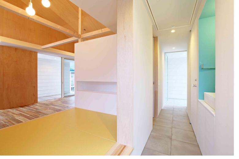 それにより生まれる「屋外のような室内のような曖昧な領域」はその時々の気候や状況に応じた調整装置となり生活に柔軟なゆとりと開放感をもたらしてくれている。