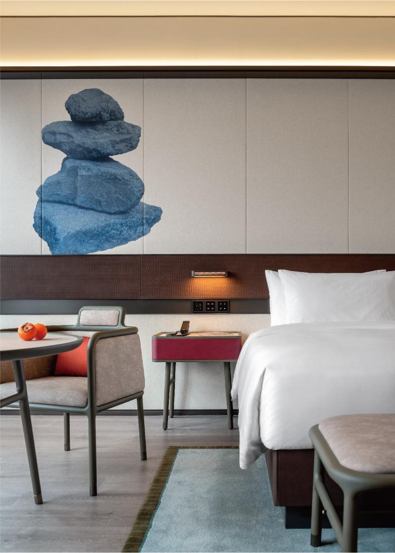 The "Stone" is one of the key elements in the hotel space, combine with many different forms of arts, guiding the guest through space to another space. It symbolizes not only the stable sense but also the traditional aesthetics pursues. It creates a microcosmic landscape view, to reflect the cultural wisdom from the ancients.