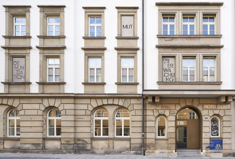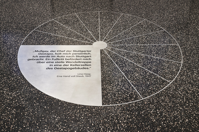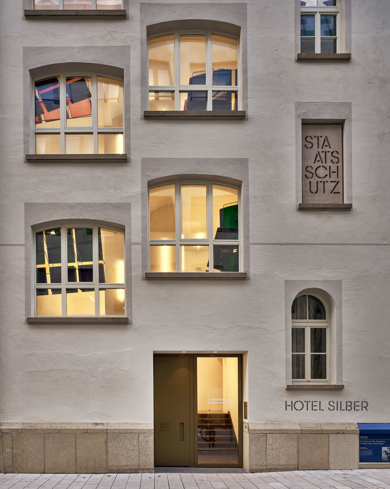 Ein weiteres Vermittlungselement im Innen- und Aussenraum des Gebäudes sind „Fenster in die Vergangenheit“, welche Einblicke in die Geschichte des Hauses geben – von einem Silberkännchen aus Zeiten des Hotelbetriebs über die Gründung der Deutschen Motorradfahrer-Vereinigung als Vorgänger des heutigen ADAC und die Verhaftung des ehemaligen württembergischen Staatspräsidenten Eugen Bolz 1933 bis zu den Diskussionen um den Erhalt des „Hotel Silber“ als Erinnerungsort in jüngster Zeit.