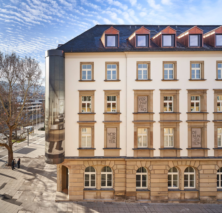 Das Gebäude in unmittelbarer Nachbarschaft zum ehemaligen Waisenhaus und dem modernen Dorotheenquartier behauptet sich heute durch seine angemessene Präsenz im Stadtraum. Zur Adressbildung und Sichtbarmachung der neuen Nutzung als Erinnerungsort sind in einige Fensteröffnungen Begriffe, wie „Ausgrenzung“, „Mut“, „Würde“, „Verfolgung“ auf Werksteintafeln eingeschrieben, die erahnen lassen, was sich im Inneren des Gebäudes einst abspielte. Diese Elemente sorgen nach Außen für eine dem Inhalt entsprechende Hermetik und bringen transluzent diffuses Licht in die Ausstellung im Innenraum.