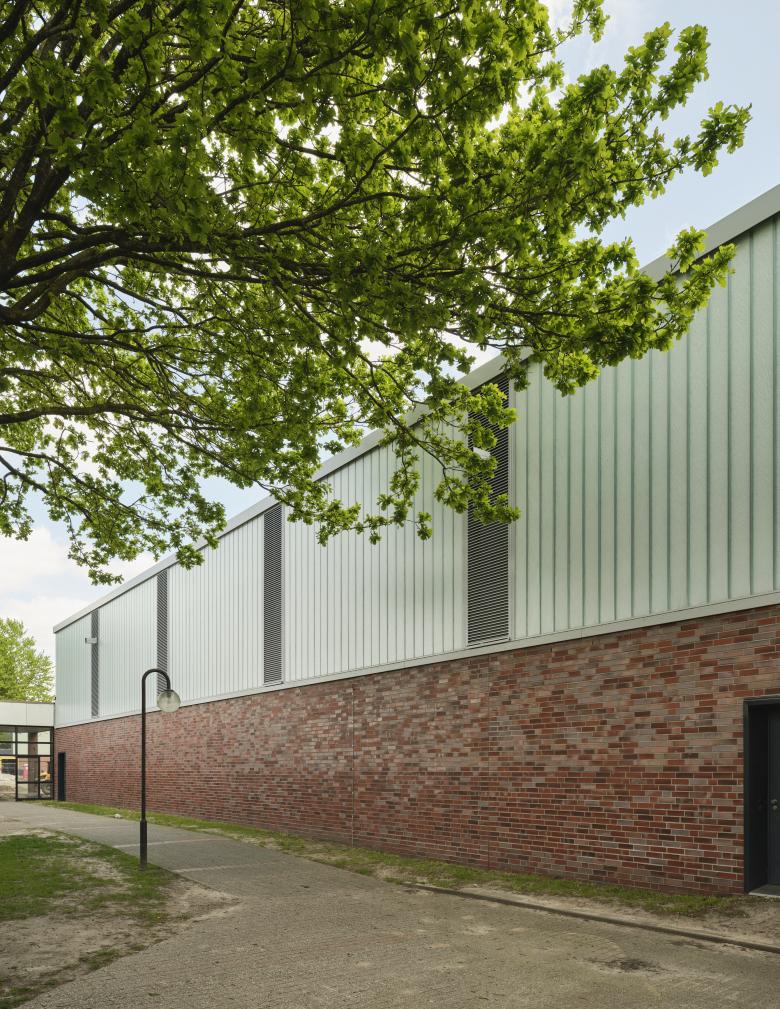 Zentraler Bestandteil der Entwurfsidee ist die Integration des Pilzgebäudes in das Gebäudeensemble des Copernicus-Gymnasiums und die Schaffung eines einheitlichen Erscheinungsbildes. Dies wird zum einen durch die homogene Fassadengestaltung aus rotem Klinker erreicht, wie auch durch die Nutzung der Flächen unterhalb der auskragenden Gebäudeteile des Pilzgebäudes, wodurch ein kompakter dreigeschossiger Baukörper entsteht. Die Erschließung des Pilzgebäudes erfolgt über den Schulhof.
