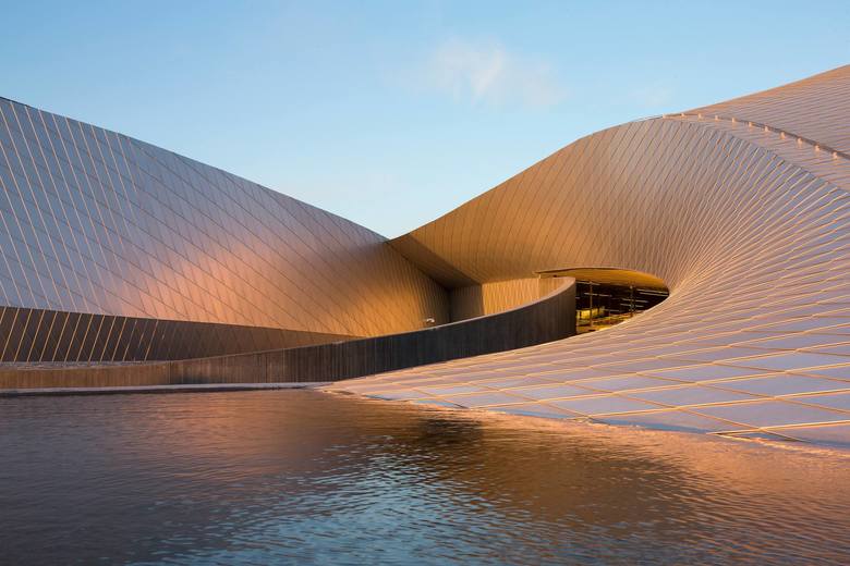 Inspired by the shape of nature whirlpool shapes: water streams, shoals of fish, flocks of birds in the sky Denmark’s new National Aquarium, The Blue Planet is shaped as a great whirlpool. This way the shape of the building itself tells the story of what awaits inside.