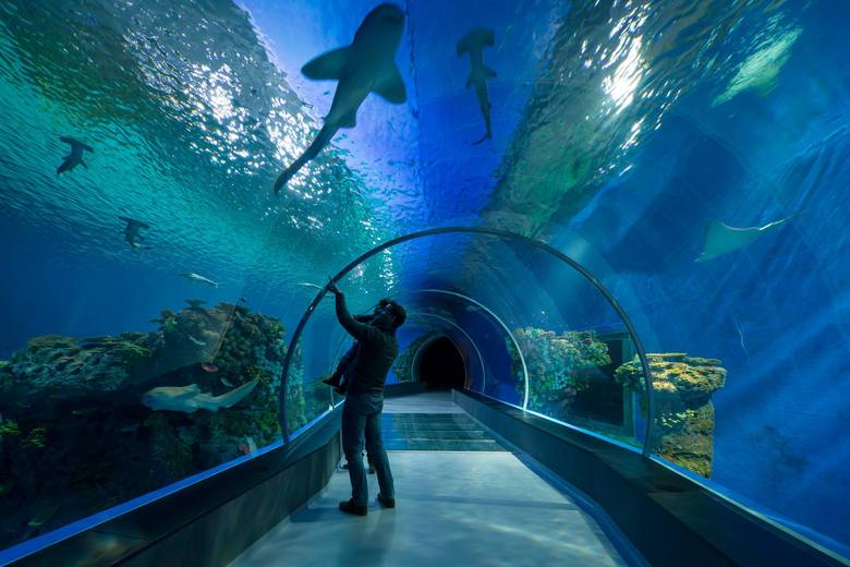 Flexible movement between exhibitions The circular foyer is the central point of navigation in the aquarium. Here visitors choose which river, lake or ocean to explore. By enabling multiple routes the risk of queues in front of individual aquariums is reduced. Each exhibition has its own theme and entrance from the foyer, where sound and images are used to introduce the atmosphere of the different exhibition areas. The restaurant enjoys a magnificent view of the sea, which begins just a few meters away.