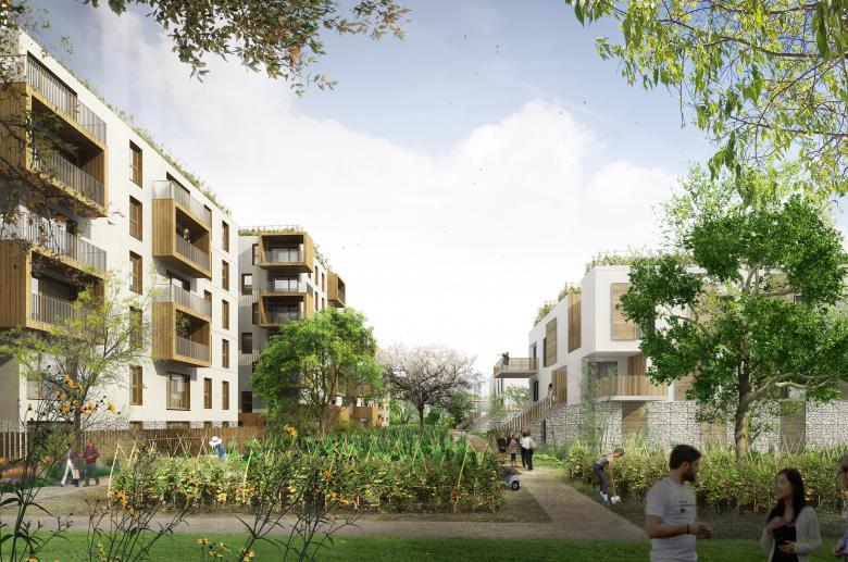 Within a peaceful neighborhood that favors pedestrian mobility, the project offers a city of proximity, united and appropriable. Public space and vegetation are an opportunity for social connection and create actual agricultural landscapes in dense urban areas.