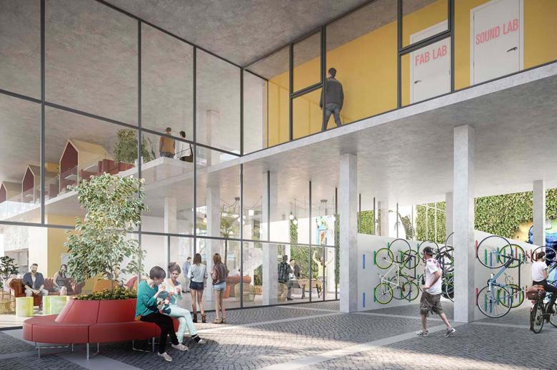 The proposed uses go beyond what is strictly necessary and create a relational building that plays a role in boosting the neighborhood's economic, social and environmental revival. Thanks to a ground floor widely open to public space offering a "place" on the Avenue de la Mer. The pedestal opens into the city and the pedestrian public space is immersed in the plot. To save construction time, improve the carbon footprint of the project while having a clean yard, we propose to de-standardize the construction by setting up a structural system of post-slab concrete and wood panels filling with mineral finish to paint. Finally, a "climatic corridor" opened on the two gables of the building will participate actively in its thermal regulation, allowing each home to have a natural through ventilation and acoustic control to measure, something new on this type of typology.