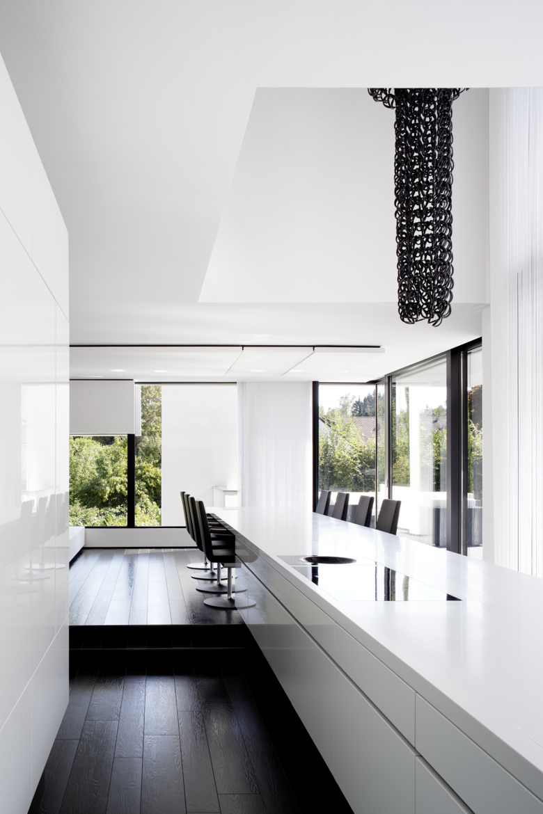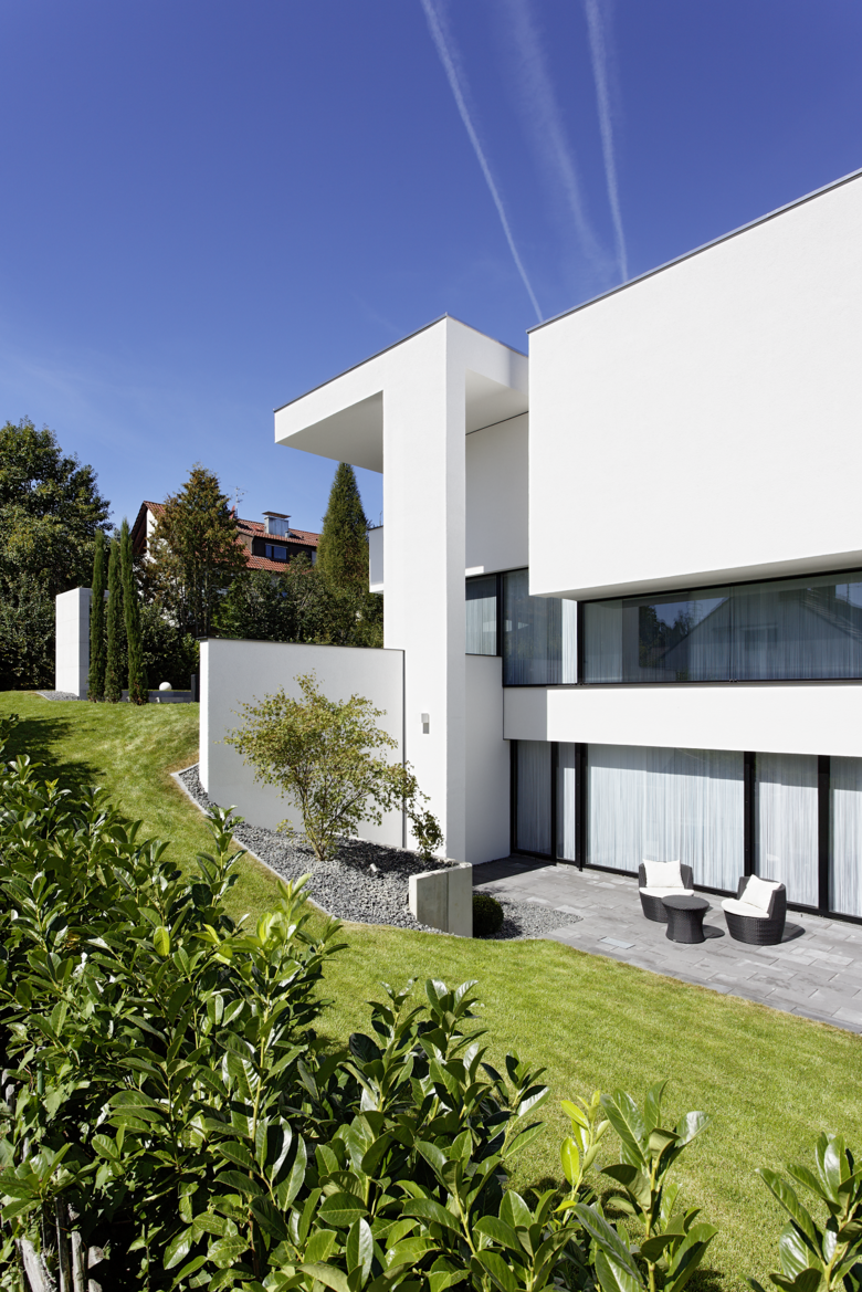 Am Rande von Stuttgart an einem Hang gelegen erscheint die Villa Casa Murano als kubischer, dreigeschossiger Baukörper mit plastisch gegliederter Fassade. Die Wirkung der Vor- und Rücksprünge in der Fassade wird durch den Wechsel von weißem Putz und zurückgesetzten schwarzen Elementen intensiviert. Im Inneren sowie bei den Außenanlagen wurde dieses Gestaltungsprinzip fortgeführt. So ist das Erdgeschoss beispielsweise durch Höhenstaffelungen im Boden, sowie abgehängte Decken, gegliedert. Um ein harmonisches Gesamtbild zu erreichen, entwarf das Architekturbüro alle Möbeleinbauten. Ein räumlicher Bezug zwischen Erd- und Obergeschoss wird in der Küche zudem durch einen Luftraum über dem Küchenblock hergestellt. In diesem ist ein vier Meter hoher Kronleuchter aus Murano-Glaselementen abgehängt. So kam die Villa zu ihrem Namen: Casa Murano.
