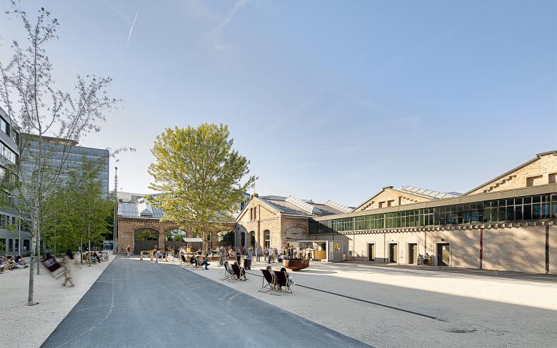 Im Inneren ist das Raumbild geprägt von Stahlstützen und rhythmisierenden Oberlichtern. Diese wurden nach historischem Vorbild rekonstruiert und tragen zugleich der neuen Nutzung Rechnung. Mit Hilfe von drei flexiblen Trennwänden lässt sich die Fläche des Kulturbetriebs in bis zu vier kleinere Räume aufteilen – die Hallen sind so für unterschiedlichste Veranstaltungsformen ausgelegt.