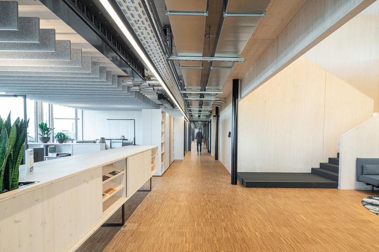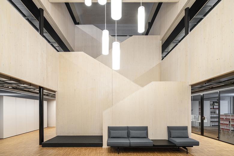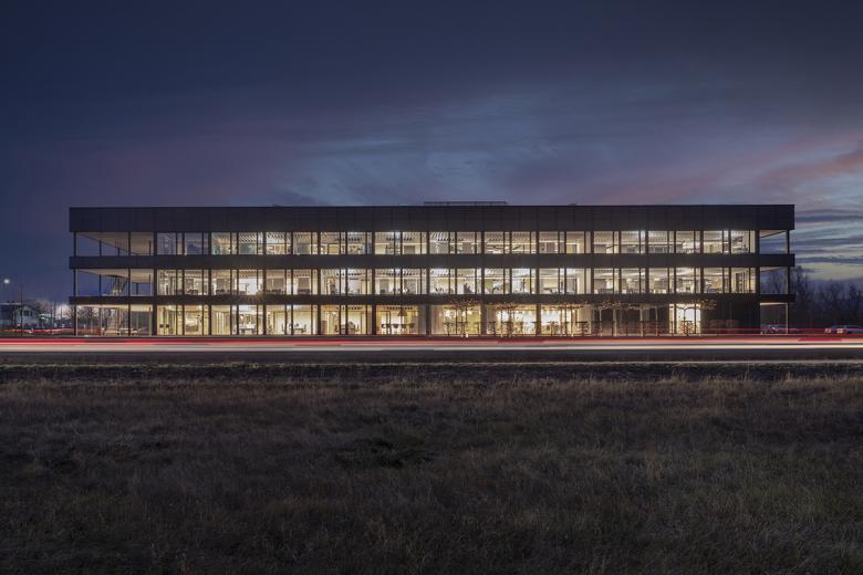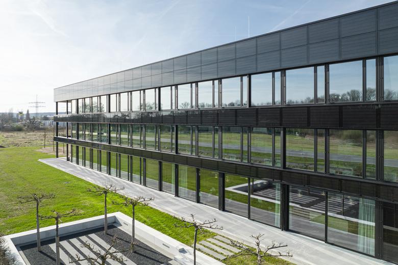 Der innere Kern wird durch Technik, Erschließung und den Kommunikationszonen gegliedert. Für die opaken Fassadenteile wurden Photovoltaikmodule eingesetzt, die einen Teil der benötigten elektrischen Energie erzeugen und dem Gebäude seine identitätsstiftende Farbigkeit verleihen.