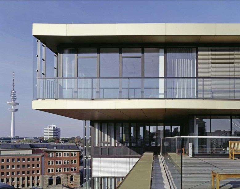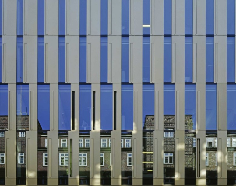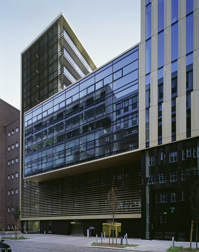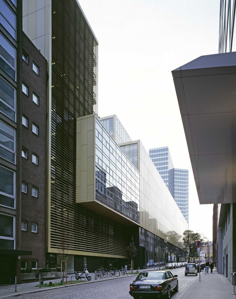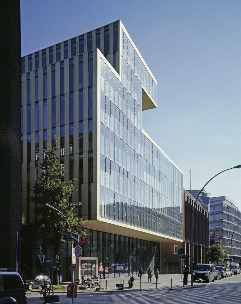 Die städtebauliche Einheitlichkeit und die architektonische Vielfalt der umgebenden Blockbebauung bilden den Rahmen für eine kombinierte Büro- und Wohnbebauung mit starker städtebaulicher und architektonischer Präsenz. Der Entwurf versucht diesen widersprüchlichen Randbedingungen durch einen ruhigen, aus der Blockstruktur entwickelten Baukörper für das Bürohaus und eine radikal minimalistische und moderne Architektur gerecht zu werden. An der Caffamacherreihe wird das skulpturelle Entwurfsthema durch eine verglaste Schnittfläche thematisiert. Eine lang gezogene, elegant auskragende Staffel des Baukörpers erscheint im Profil des Schnittes an der Caffamacherreihe als Teil einer vollständig rahmenlos verglasten Doppelfassade.
