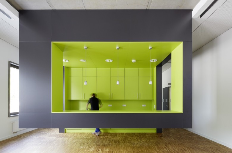 Durch hoch gedämmte Außenbauteile werden die Heizlasten minimiert. Die Heizungsanlage wird mit schnell regelbaren Heizflächen zur Abdeckung der Heizspitzen, zur schnellen Raumaufheizung und zur Optimierung des Komforts ausgelegt. Inneren Wärmequellen (Personen, Beleuchtung, Geräte) werden in der Heizperiode den größten Teil des Energiebedarfs aufgrund der guten Wärmedämmung abdecken. Die Außenluftversorgung der Unterrichtsräume erfolgt über natürliche Fensterlüftung. Die erforderlichen Lüftungsanlagen für das Forum, die Mensa und die Küche verfügen über Kühlung und effiziente Wärmerückgewinnungsanlagen. Das Gebäude verfügt zusätzlich über eine Betonkernaktivierung in den Geschossdecken, die zur Kühlung im Sommer, sowie zur Heizungsunterstützung im Winter verwendet wird. Auf dem Dach von Bauteil C sind Photovoltaikelemente zur Energiegewinnung geplant.