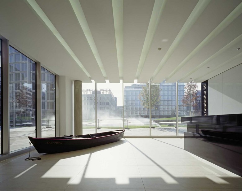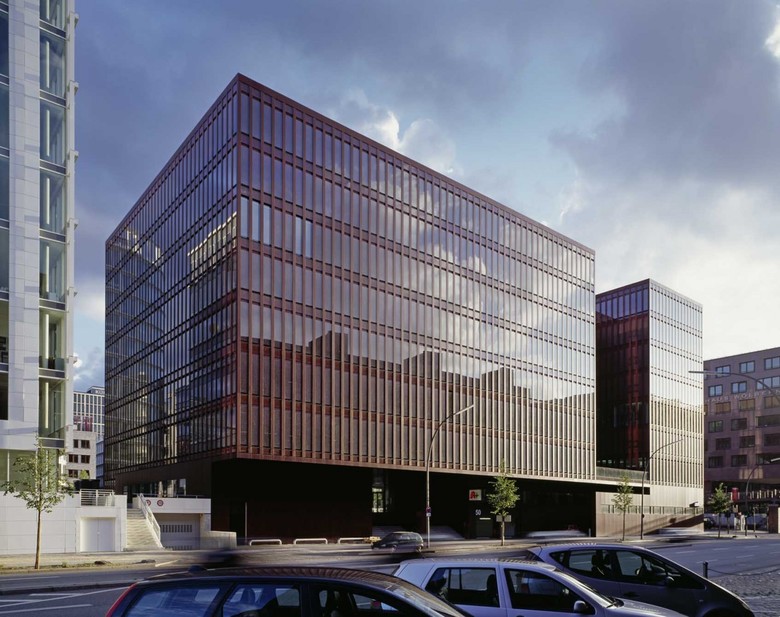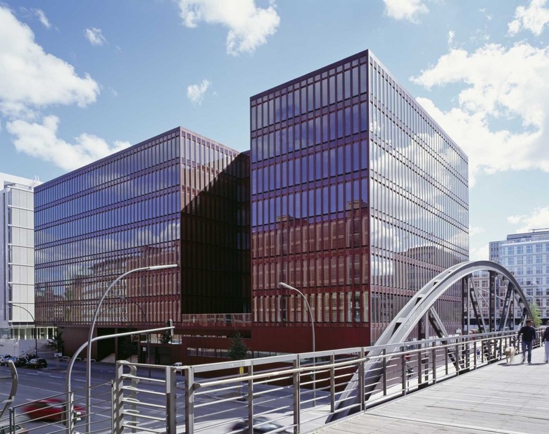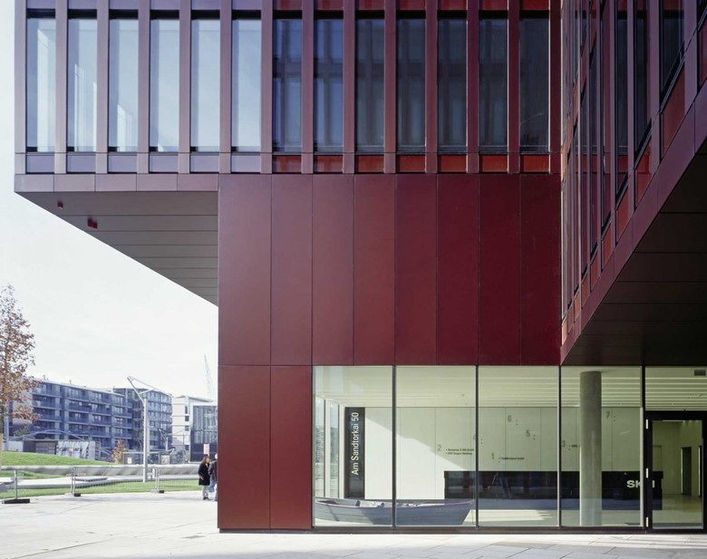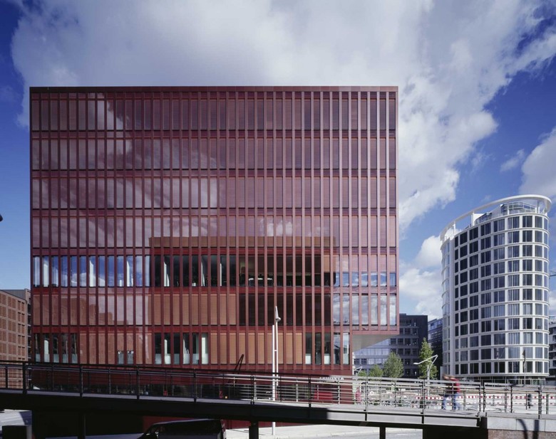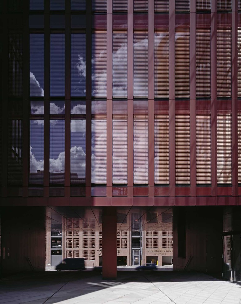 Durch eine Vielzahl von Dualitäten musste der Entwurf für ein Bürohaus mit Gewerbeflächen vielfältige räumliche, funktionale und atmosphärische Verknüpfungen herstellen. „Historische Speicherstadt - neue HafenCity“ „Straße – Platz“ „Unten (Straße) - Oben (Platz)“ Auf diese Anforderungen antwortet der Entwurf mit einem gestalterischen und konstruktiv einfachen wie komplexen Baukörper, der sich durch eine elegante, dunkelrote Aluminiumfassade in die historische und die neue Umgebung einfügt.