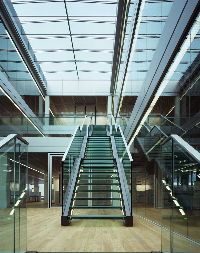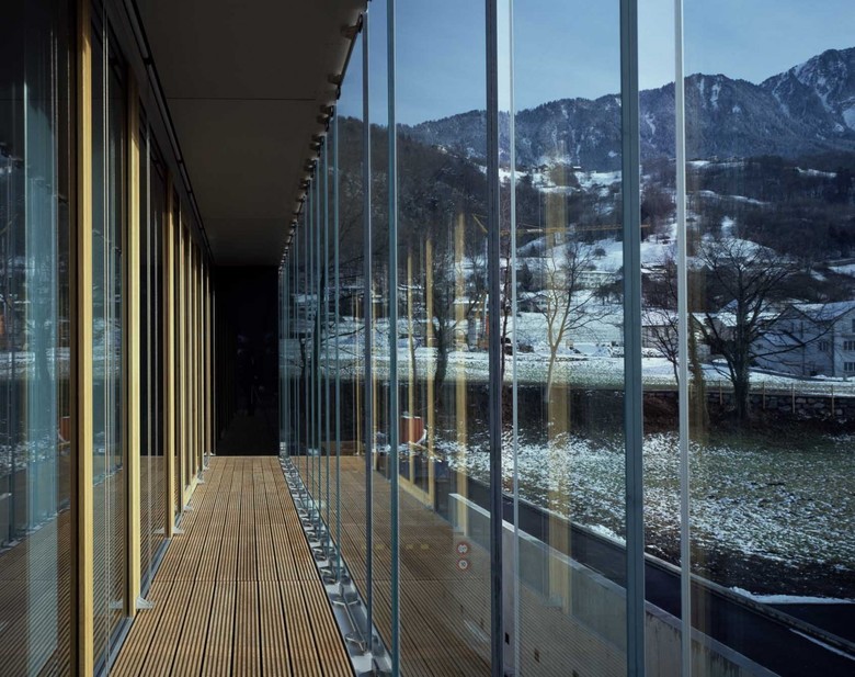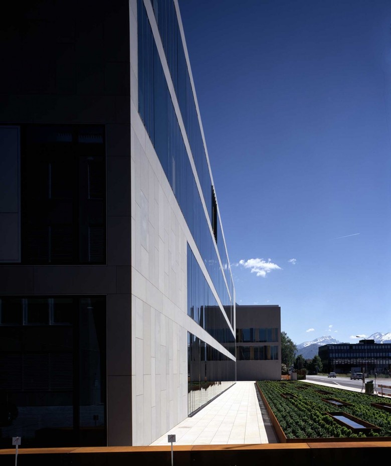 Das Zentrum Triesen der VP Bank mit Hauptsitz in Vaduz, beinhaltet primär Back- Office-Arbeitsplätze mit Sonderbereichen wie Bistro, Sitzungs- und Schulungsbereichen. Themen für den Städtebau und die Architektur sind die Definition und Rhythmisierung des Straßenraumes der Triesener Landstraße sowie die Verbindung zum landschaftlichen Hintergrund. Nach den Prinzipien der Einfachheit und Bewegung, entwickelt sich ein raumbildendes Ensemble von kubischen Solitären mit einer transparenten, mehrschichtigen Fassade, die vielfältige Durchblicke zum beeindruckenden Landschaftsraum ermöglicht. Besonderes Merkmal der überwiegend in Großräumen angeordneten Büros sind die lichtdurchfluteten Hallen, die eine großzügige und kommunikative Atmosphäre erzeugen.