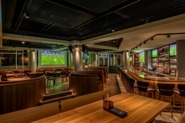 Mit modernem Interieur, knapp 130 unterschiedlichen Sitzmöglichkeiten wie gemütlichen Nischen und großen Community Table, sowie stilvoller Beleuchtung hat BRUMANN eine offene, einladende Stimmung erzeugt, die ein idealer Treffpunkt für alle ist, die in lockerer Umgebung Zeit mit Freunden, Familie oder Kollegen in einer echten Sportsbar verbringen möchten.