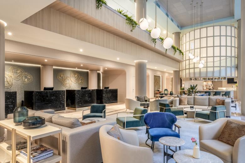 Der Great Room in einem Marriott Hotel ist mehr als nur eine Hotel Lobby. Der hohe Raum mit offenem Grundriss übernimmt eine Vielzahl von Funktionen: Welcome Desk, komfortables Wohnzimmer, Cafe/Bar, Workspace etc. Das Büro Living Design aus Stockholm entwarf ein spektakuläres Interior Design zur Neugestaltung der Hotelhalle im Münchner Stadtteil Schwabing. In 2023 wurde BRUMANN als Generalunternehmer für Innenausbau & Einrichtung mit der Umsetzung beauftragt.