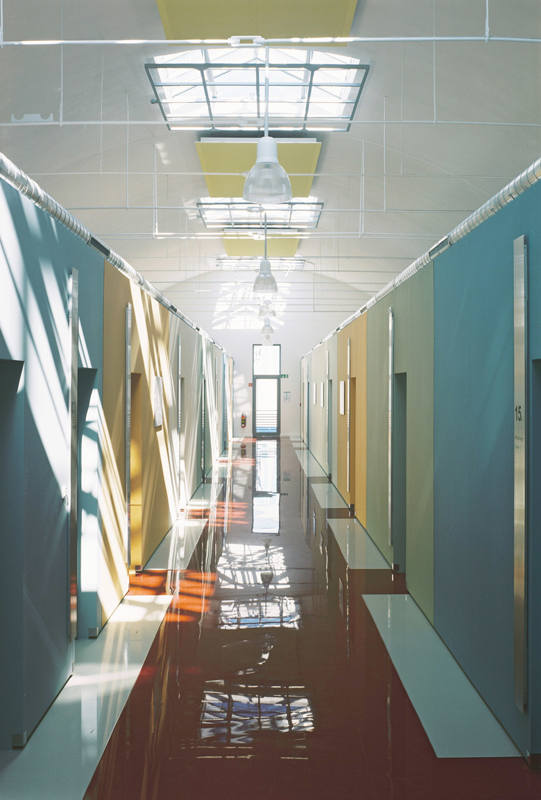 Das Raumprogramm sah auf ca. 1.200 qm eine Metallbauwerkstatt und ein Möbellager im Erdgeschoss und Büro- und Schulungsräume im Obergeschoss vor.