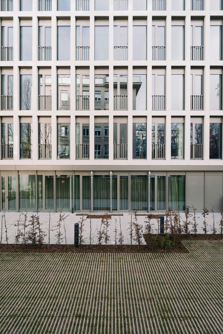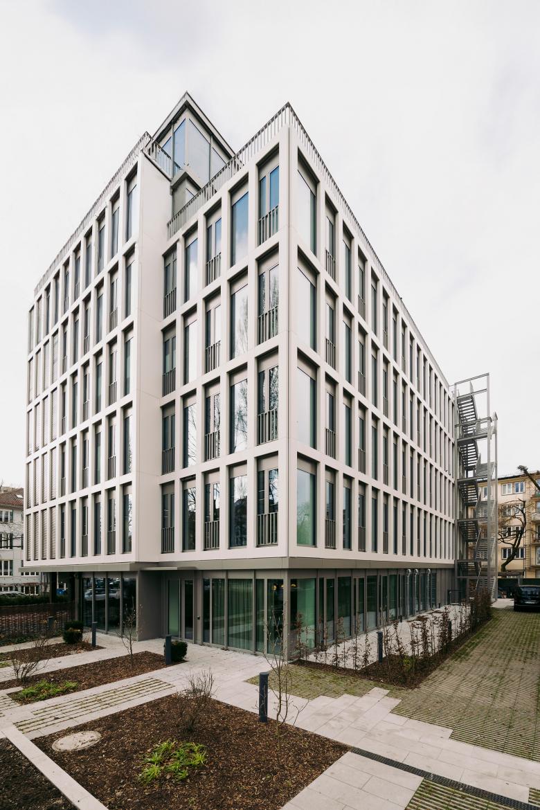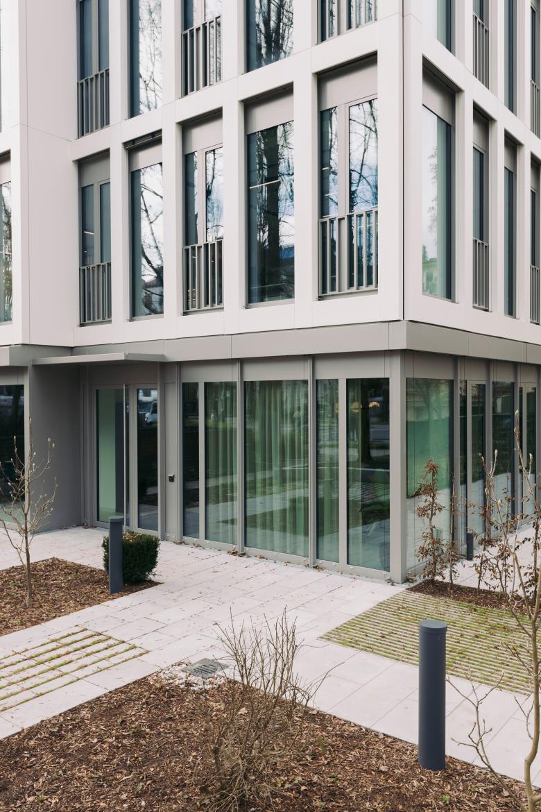 Mit dem Refurbishment des Büro- und Geschäftsgebäudes aus den 1980er Jahren wurde die Leopoldstraße 7 in eine zukunftsweisende Architektur transformiert. Durch eine umfassende Sanierung wurden die Gebäudestruktur modernisiert, die Büroflächen erweitert und eine neu gestaltete Fassade geschaffen, die sowohl ästhetische als auch energetische Vorteile bietet. Die neu strukturierten Innenräume ermöglichen flexible Arbeitsplatzlösungen mit offenen und geschlossenen Bereichen, optimaler Tageslichtnutzung sowie großzügigen Dachterrassen für eine hochwertige Arbeitsumgebung. Ein besonderer Fokus lag auf Nachhaltigkeit, indem ressourcenschonende Gebäudetechnik integriert und eine LEED-Gold-Zertifizierung erreicht wurde, während die graue Energie des Bestandsgebäudes erhalten blieb. Die Revitalisierung wertet nicht nur die Funktionalität des Gebäudes auf, sondern bewahrt auch seine kulturelle Bedeutung und stärkt seine Rolle als lebendiger urbaner Anlaufpunkt im Münchner Stadtbild.