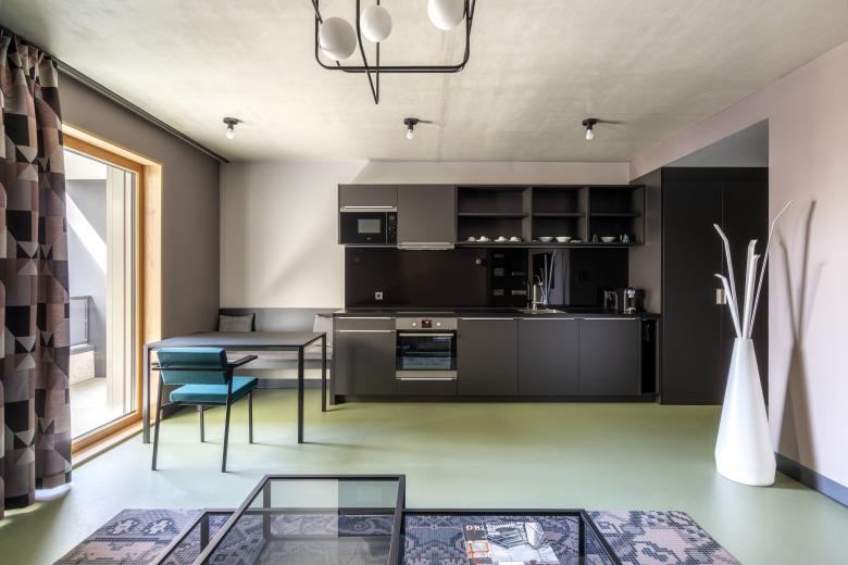 In den Einrichtungslösungen des Pirnaer Architekturbüros in einer Stilpalette von Klassik über Romantik bis zur Moderne sollen die Hotelgäste ein inspirierendes Wohnen zur Probe und gleichzeitig die Wirkung von emotionaler und optimaler Raumnutzung erleben. Dabei konzentrieren sich die außergewöhnlich ästhetischen Ausstattungen nicht nur auf das Schöne, sondern gleichzeitig auf Funktionalität, wodurch sie während des gesamten Aufenthalts für Gelassenheit sorgen. Große Gepäckablagen, geräumige Kleiderschränke und Badezimmerregale gewährleisten das übersichtliche Verstauen des gesamten Urlaubsgepäcks. Auf der ästhetischen Ebene hingegen erfahren die Besucher durch bewusste Überspitzungen, starke Kontraste und harmonisches Zusammenspiel einzelner Elemente einen Ausbruch aus dem oftmals standardisierten Alltag.