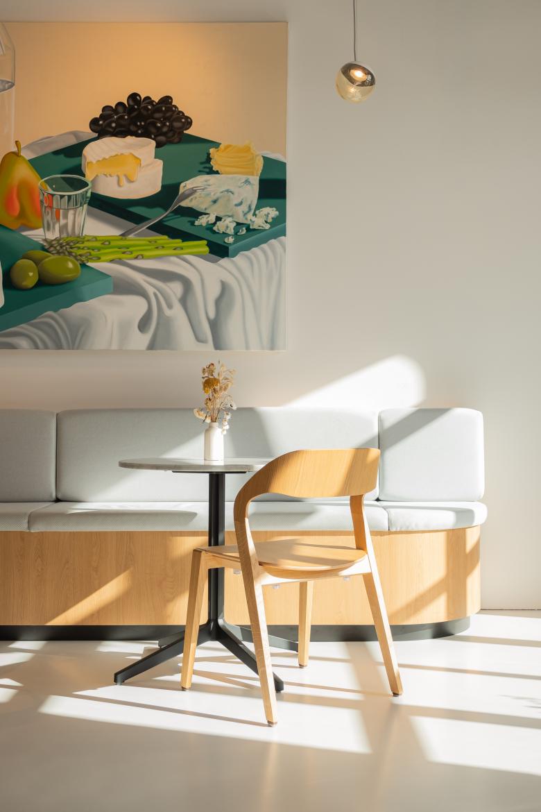 Auf dem ganzheitlichen Konzept für ein Rebranding durch die Amsterdamer Kreativagentur Forpeople aufbauend, erweist sich das Interior des Startups Formo in den Räumen eines historischen Speichergebäudes am Ufer der Spree nicht nur als Ort der Arbeit, sondern gleichsam als zweiter Wohnsitz für die Mitarbeiter. Hier verweilt man nach Feierabend gerne auf ein Bier und lädt dazu auch hin und wieder Freunde und Familie ein. Das Headquarter des Herstellers von milchfreien Käseprodukten aus fermentierten Proteinen soll außerdem Bindeglied zu den Teams der anderen Standorte von Formo sein. Um auf die in Zukunft erwartungsgemäßen Veränderungen der Kultur und der Größe des jungen Unternehmens vorbereitet zu sein, war Flexibilität ein Schlüsselbegriff des Gestaltungskonzepts.