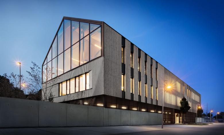 Moderner Gewerbebau in kleinstädtischem Umfeld